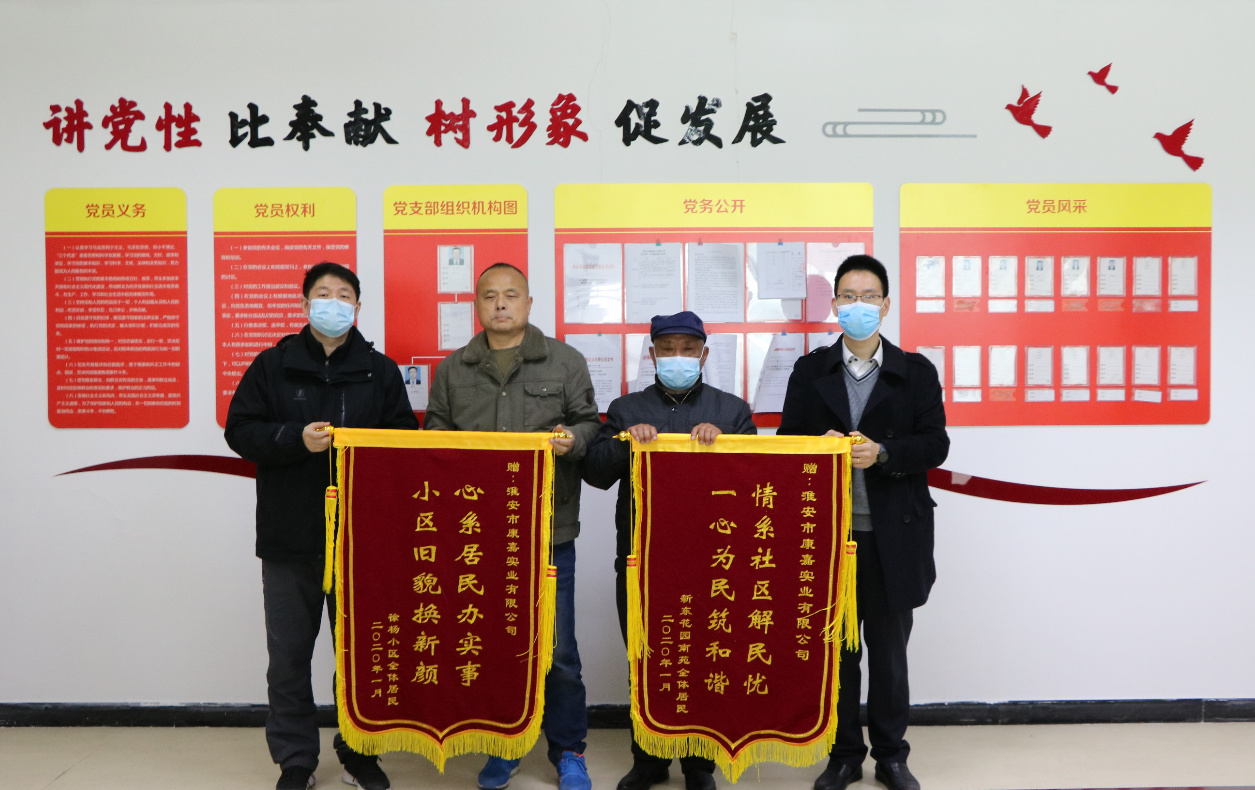 詳細(xì)介紹:3月16日上午,新東花園居委會志愿服務(wù)站站長、業(yè)主代表李志牛和徐楊小區(qū)居民代表劉鳳喜將寫有“心系居民辦實事、小區(qū)舊貌換新顏”“情系社區(qū)解民憂、一心為民筑和諧”的兩面錦旗送到康嘉公司領(lǐng)導(dǎo)手里,對我公司在老舊小區(qū)改造工程中認(rèn)真付出,深表感謝。 自2018年起,康嘉公司相繼對磚井花園、新強花園、南方花園、龍門之都等...