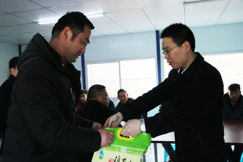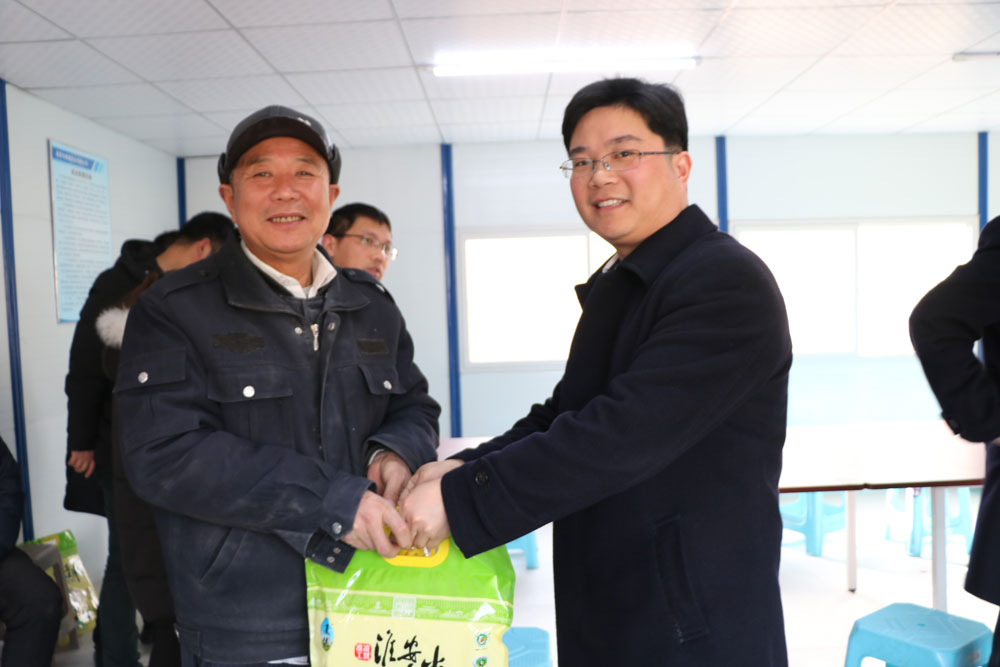 春節(jié)臨近,農(nóng)民工兄弟依然堅守崗位,桂玉生對他們不畏艱辛,敢于吃苦的精神表示贊賞和肯定,并為他們送上了節(jié)日慰問品,讓辛苦一年的工人提前過個溫暖歡樂的春節(jié)。
