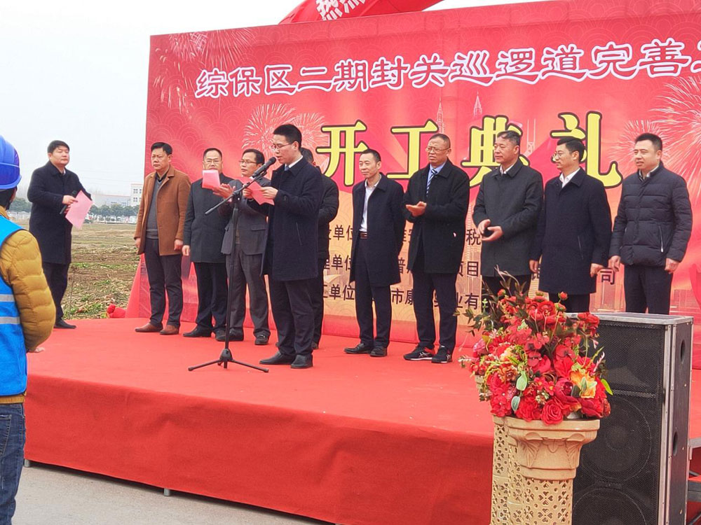 2019年2月26日上午,項目現(xiàn)場洋溢著一派溫暖又熱烈的氣氛。由康嘉公司承建的綜保區(qū)二期封關(guān)巡邏道完善工程開工儀式在空港產(chǎn)業(yè)園項目現(xiàn)場隆重舉行。集團(tuán)董事長尚梅軍、集團(tuán)副總經(jīng)理桂玉生、綜保區(qū)副主任丁川、規(guī)劃建設(shè)部部長汪愛國、副部長張士洪、空港產(chǎn)業(yè)園金港路辦事處黨委書記陳榮龍、辦事處主任張濤、副主任趙華、普杰睿思總經(jīng)理何一磊、康嘉公司總經(jīng)理陳毅及各級相關(guān)領(lǐng)導(dǎo)到場參加典禮。儀式由康嘉公司副總經(jīng)理黎洵主持。