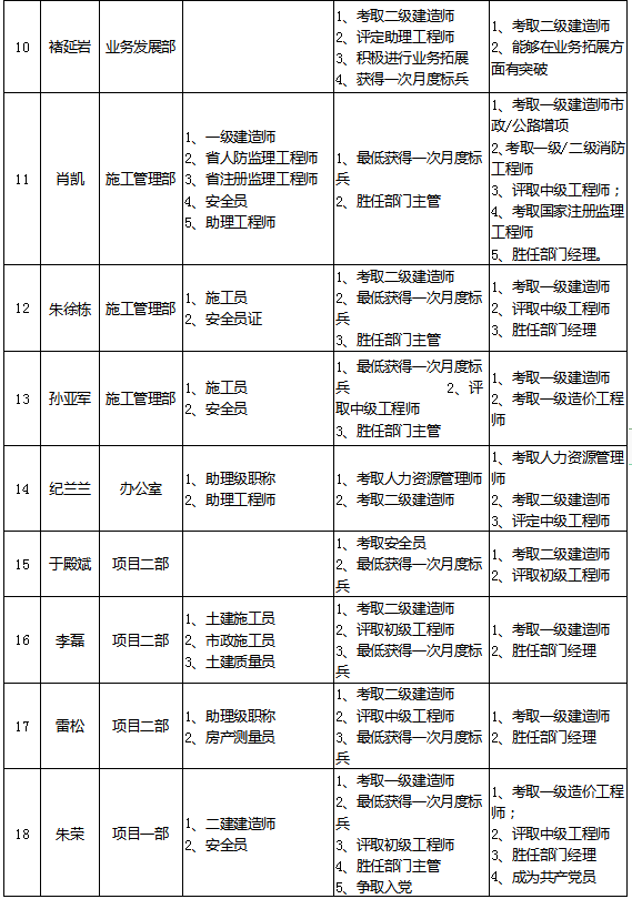 通過此次素質提升工程,康嘉公司目標在三年內改變公司文化層次結構、技術職稱結構和執(zhí)業(yè)技能結構,力求建成一支具有科學理論武裝、良好道德風尚、過硬職業(yè)技能、頑強工作作風、嚴明組織紀律的建筑鐵軍。爭取通過本次活動,打造一支滿足企業(yè)區(qū)域戰(zhàn)略、產業(yè)布局及轉型升級要求的高層次人才隊伍。